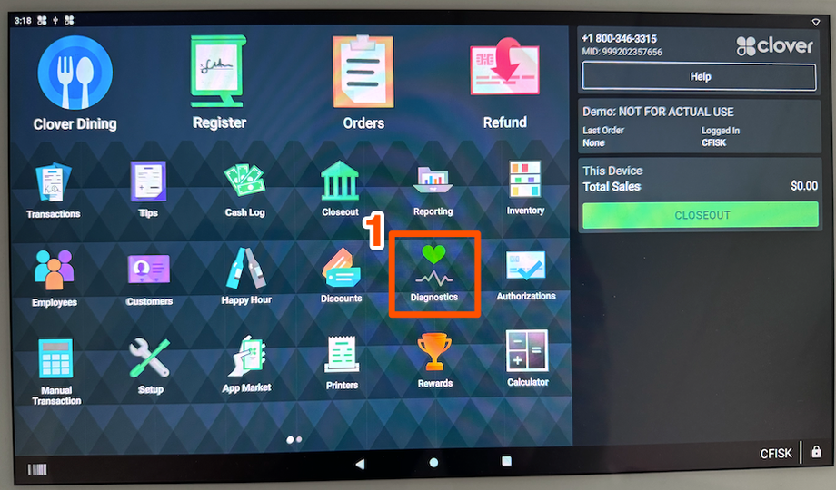 The images below are for a Clover station, but the process will be similar on any Clover device.