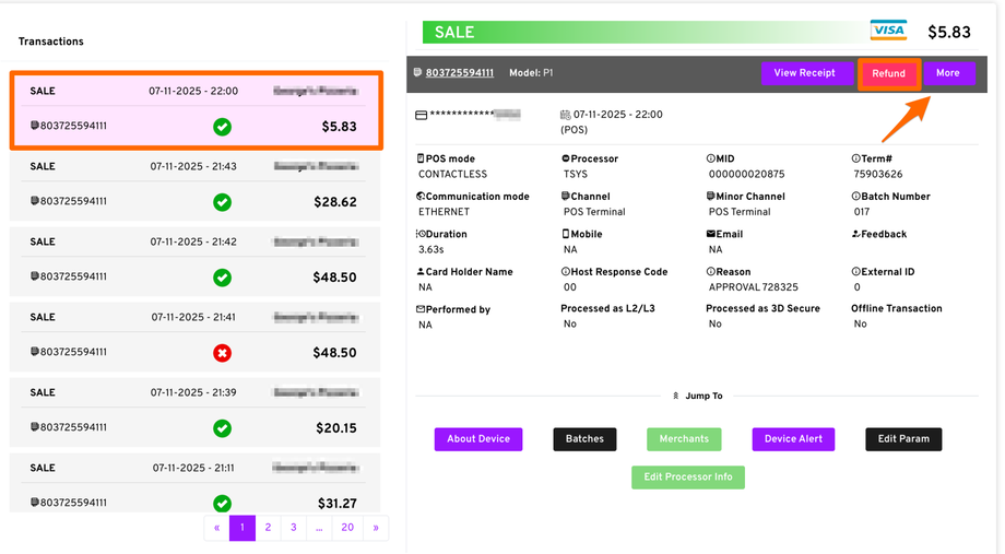 - From the transaction details area, click the More button.