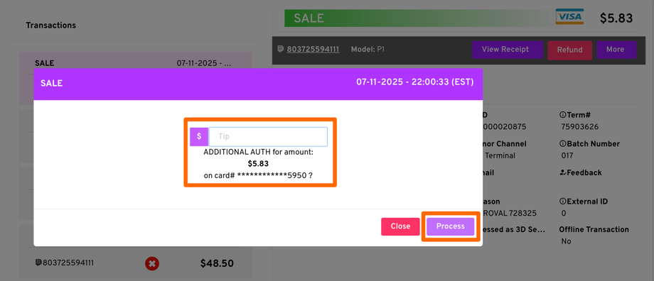- Enter the amount you wish to adjust and click Process.