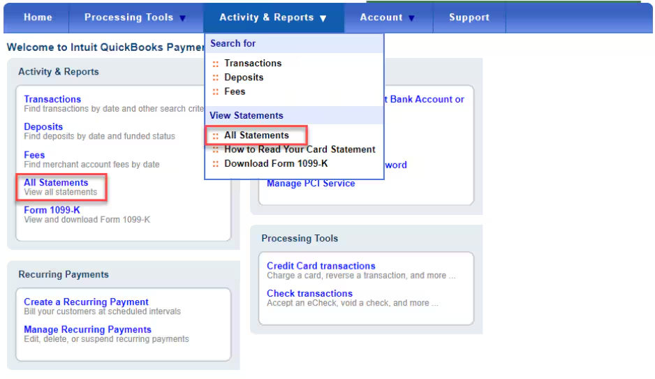 Downloading Merchant Statements from QuickBooks