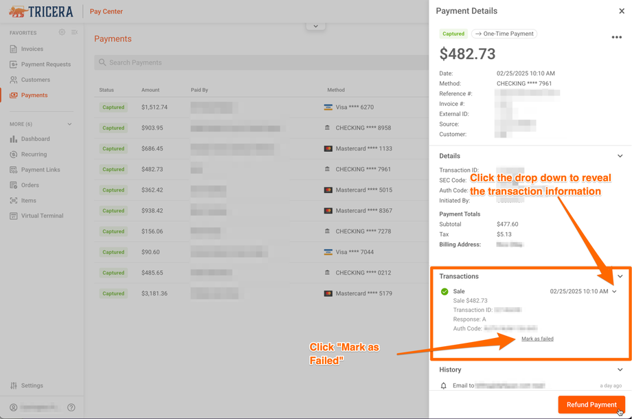 Marking a Payment as Failed: