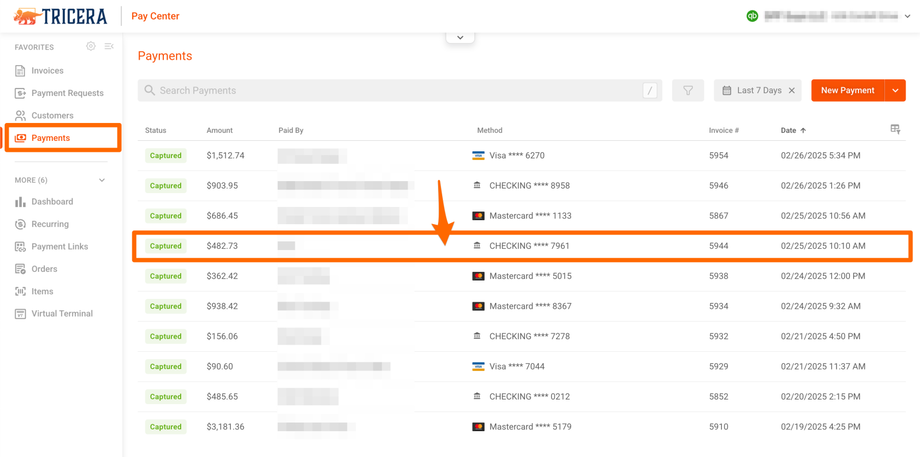 - Click the payment you need to manage:
