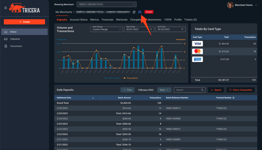 Once there, you'll see a purple briefcase icon next to your Merchant ID.