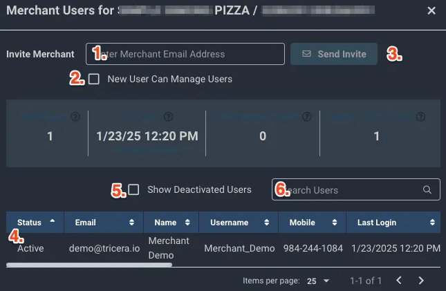 - Once the email is entered and the user management election is decided, click Send Invite (3)