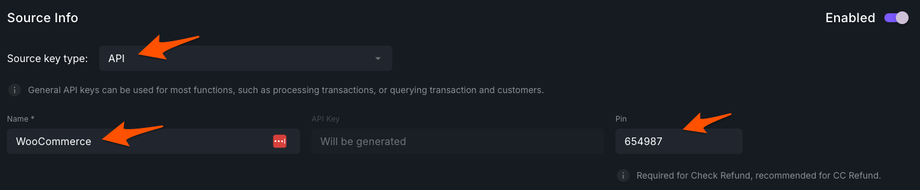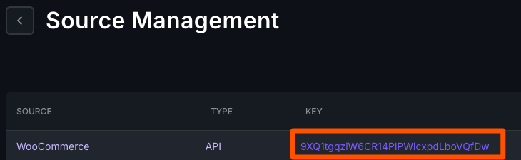 - Click Save and you will be brought to the Source Management screen. Your API key will be displayed: