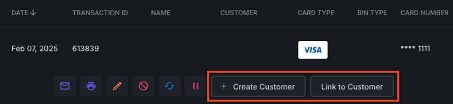 If a transaction was processed without saving the customer profile (e.g., the Create a new customer checkbox was not checked, or the transaction was processed outside of the virtual terminal), you can create a customer profile from the transaction.