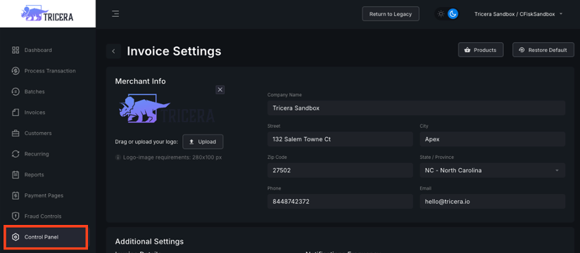 - Before creating an invoice, navigate to the Control Panel tab on the left panel.