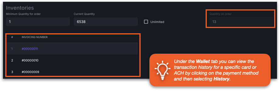 Additionally, if you have any outstanding invoices (unpaid but sent) you will see how many of these items are allocated but not fulfilled/paid.